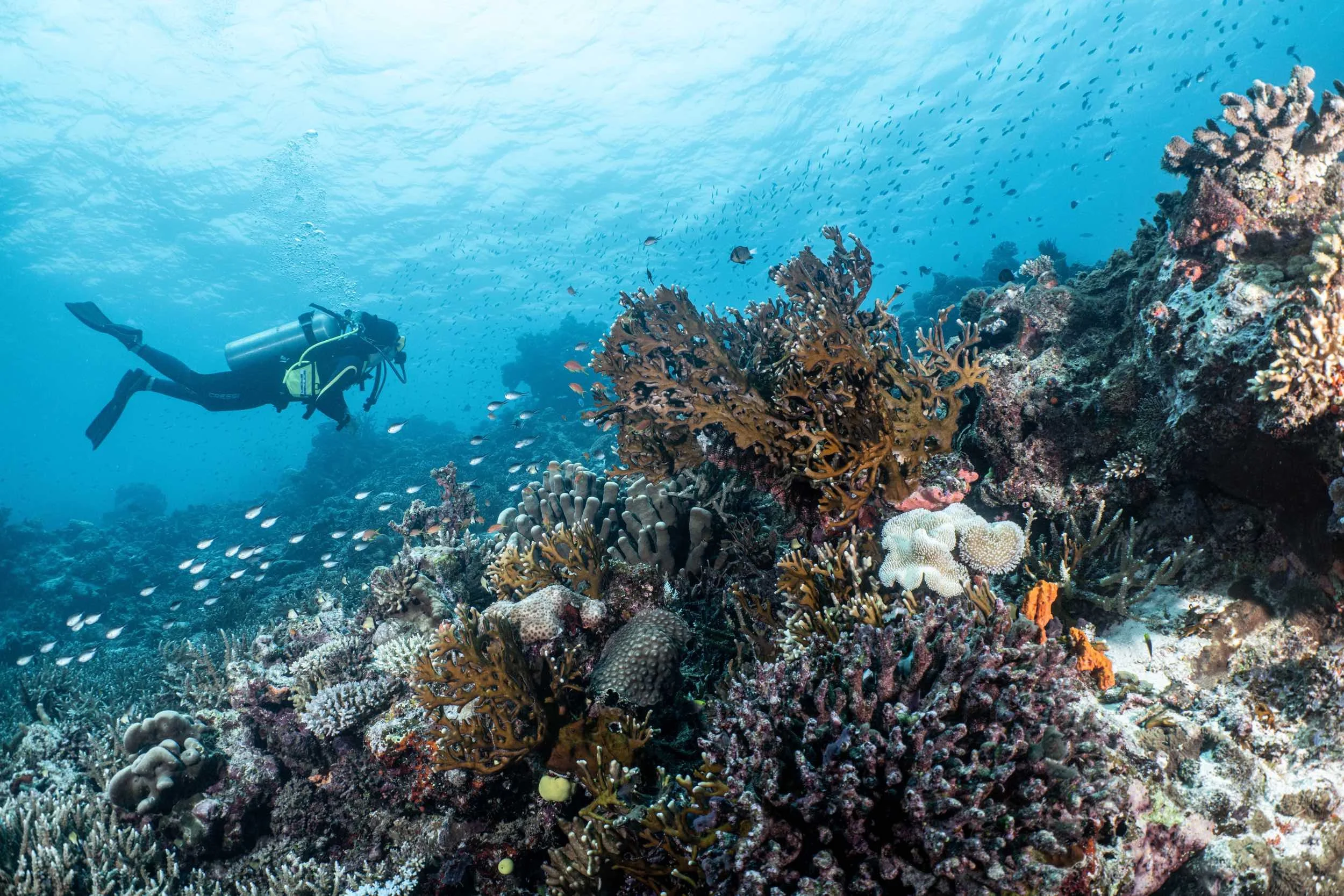 Reef scene with scuba diver. Sony A7RV, Nauticam WAPC-C, YS-D3 Strobes