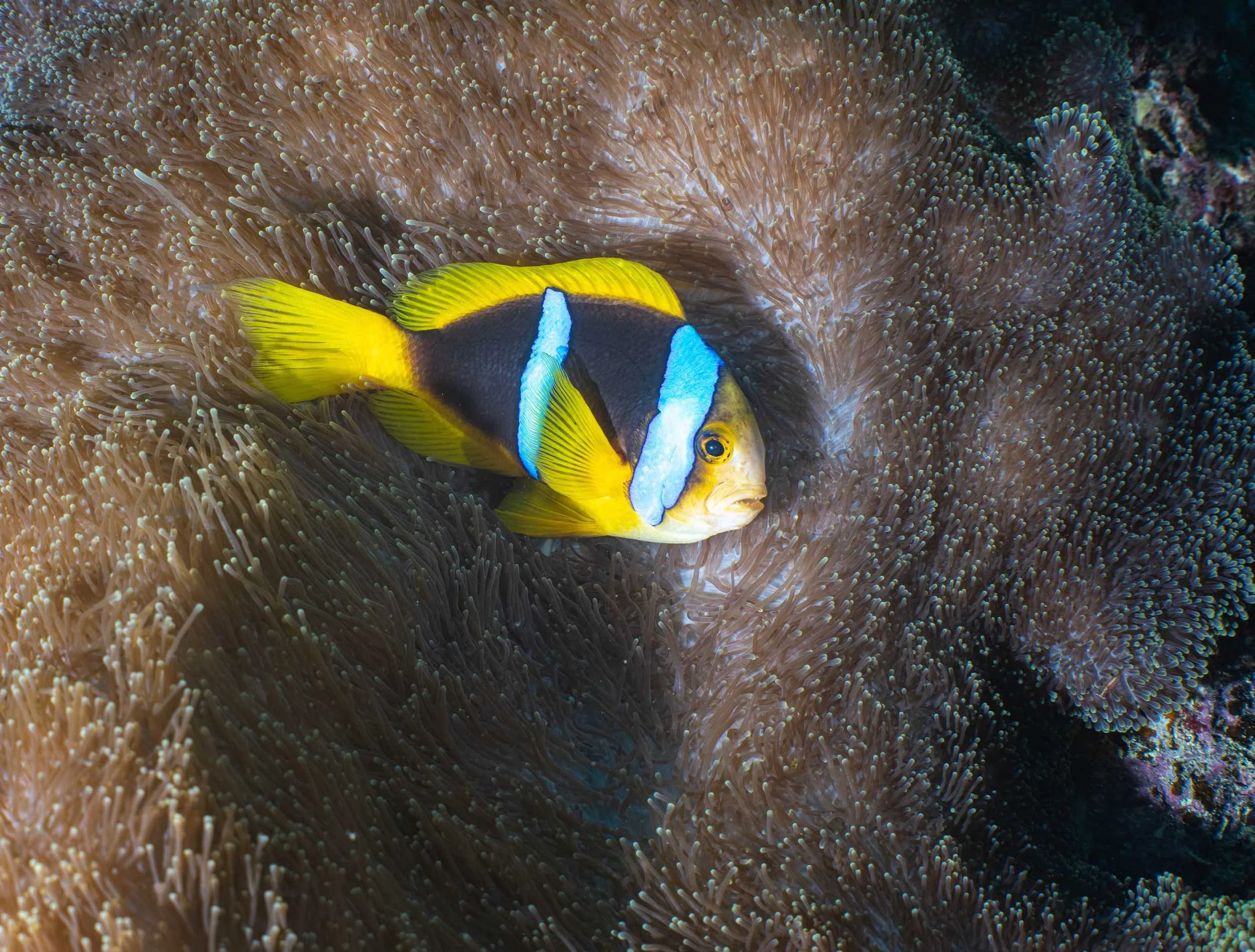 Anemone and fish . Sony A7RV, Nauticam WAPC-C, YS-D3 Strobes